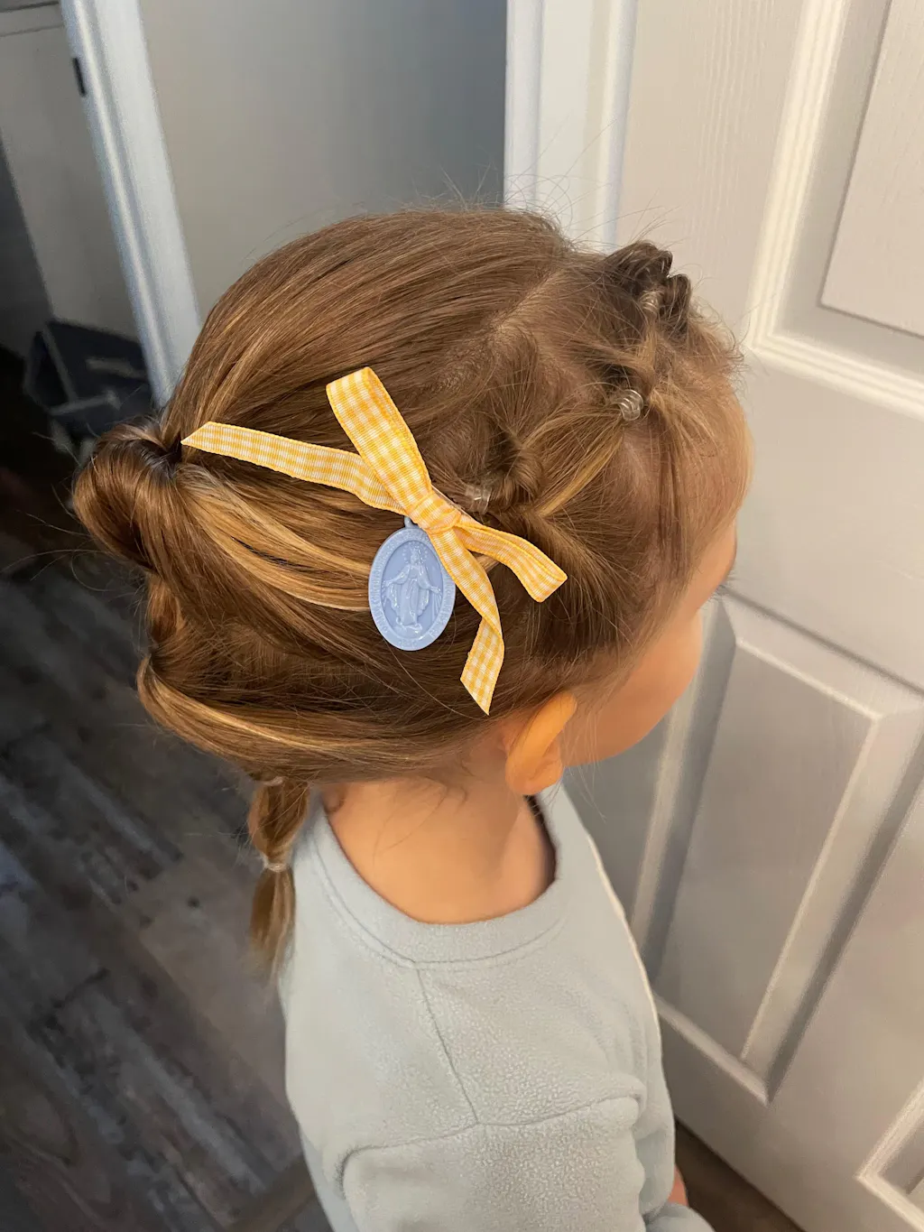 Miraculous Medal Yellow Gingham Petite Bow